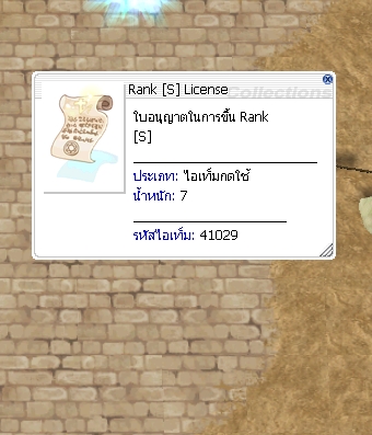 - ให้ท่านทำการเช็คยอดสะสมกับ NPC ว่าถึงตามที่ต้องการหรือไม่ และให้กดรับใบ ภาพตัวอย่างกดรับ Rank [S] License