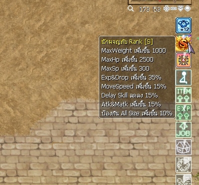 - เมื่อท่านกดรับใบ Rank มาเรียบร้อยแล้ว ให้ท่านกดใช้งาน ท่านก็จะได้รับบัพด้านขวามือค่ะ