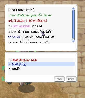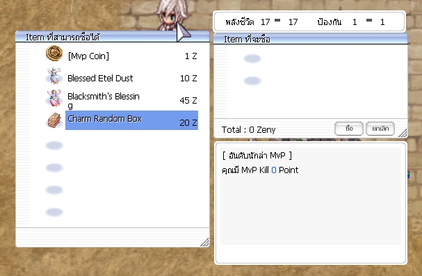 - กล่อง Charm Random Box สามารถแลกได้ที่ NPC : MVP Ranking เลือกเมนู MVP Shop