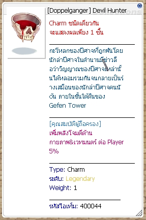 - [Doppelganger] Devil Hunter คุณสมบัติ - เพิ่มพลังโจมตีกายภาพ & เวทมนตร์ ต่อผู้เล่น 5%