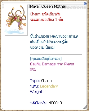 - [Maya] Queen Mother คุณสมบัติ - ป้องกัน Damage จากผู้เล่น 5%