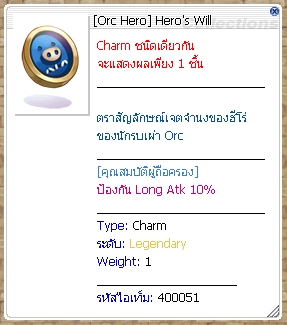- [Orc Hero] Hero's Will คุณสมบัติ - ป้องกัน Long ATK 10%