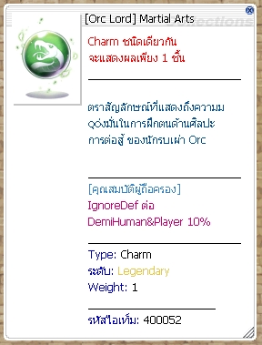 - [Orc Lord] Martial Arts คุณสมบัติ - IgnoreDef ต่อ DemiHuman & ผู้เล่น 10%