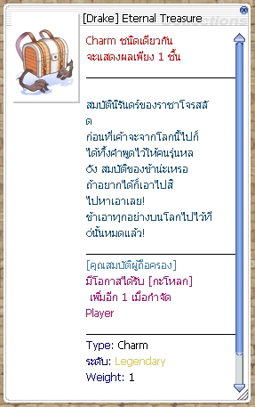 - [Drake] Eternal Treasure คุณสมบัติ - มีโอกาสได้รับ [กระโหลก] เพิ่มขึ้นอีก 1 อัน เมื่อกำจัดผู้เล่น